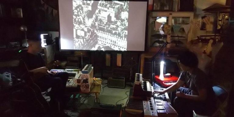 おもちゃ楽器やトイピアノ、ガラクタ達に囲まれて、ミニマルでチープでヘンテコな音楽を作り続けている、Uとハナによる『おもちゃ楽器』ユニット。